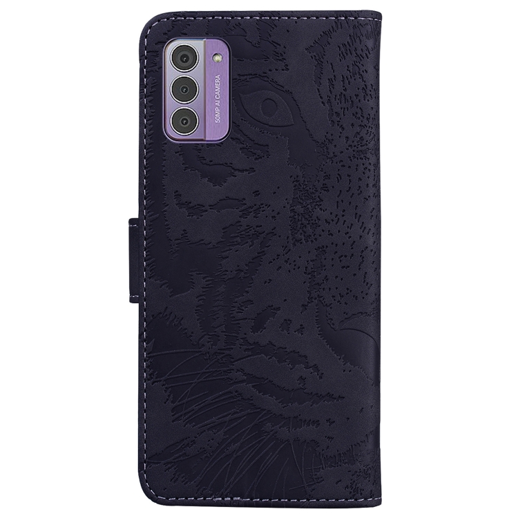 Funda Flip de Cuero para Nokia G42 con Patrón Tiger Embossing (Negro)