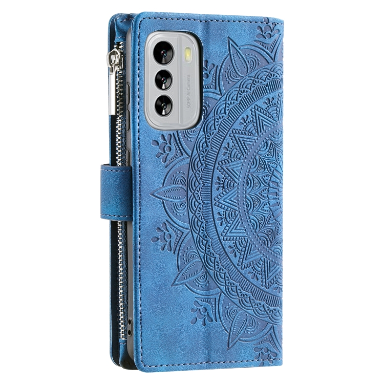 Funda para Nokia G60 de Cuero con Cremallera Totem y Múltiples Tarjetas (Azul)