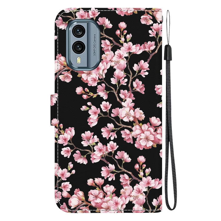 Funda de Cuero para Nokia X30 con Dibujo Coloreado y Textura de Cristal (Flor de Ciruelo)