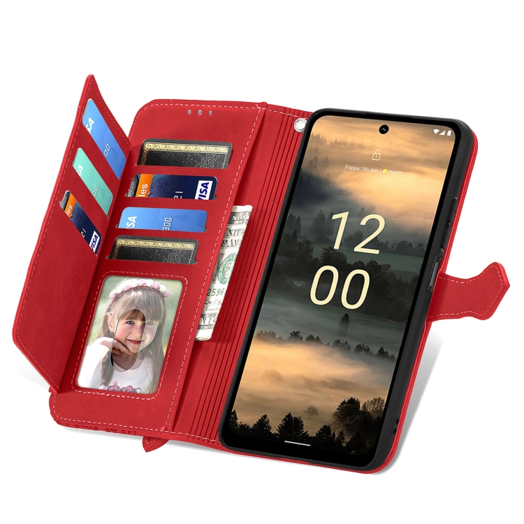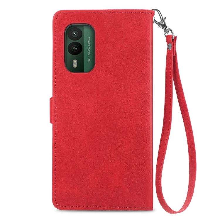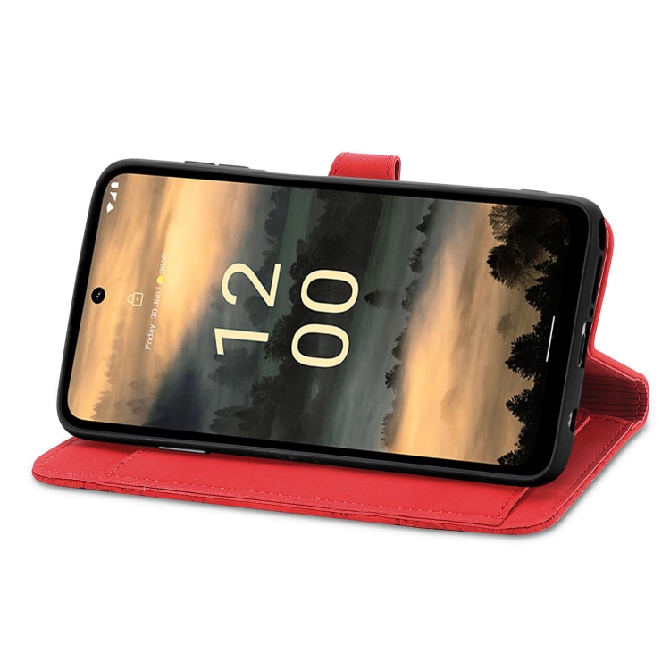 Funda de Cuero para Nokia Xr21 con Cremallera y Flores en Relieve (Rojo)