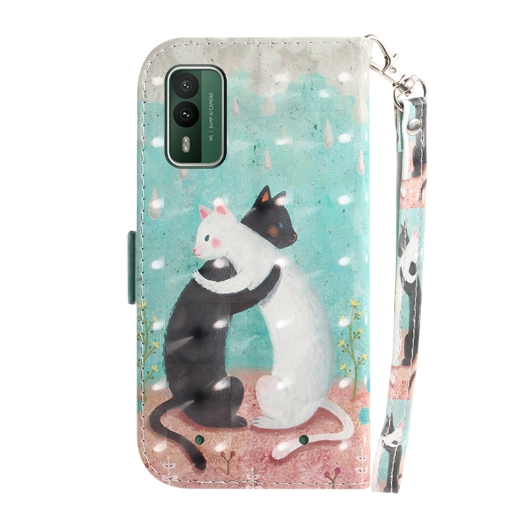 Funda de Cuero para Nokia Xr21 con Tapa Horizontal y Diseño 3D Gato Blanco y Negro