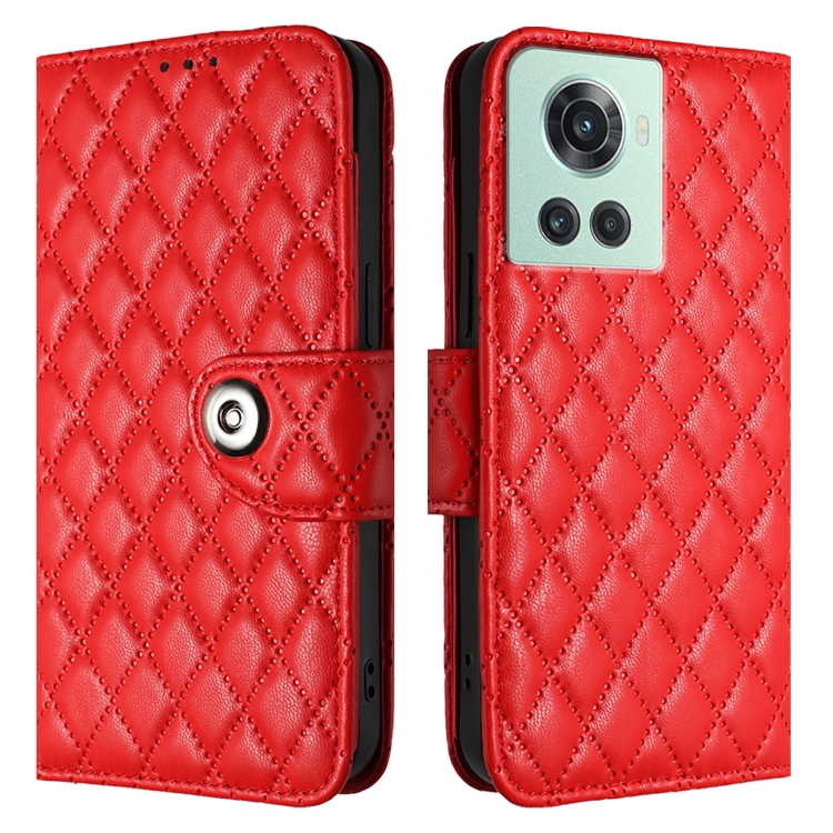 Funda de Cuero con Tapa y Cordón para OnePlus 10R / Ace Rhombic Texture (Rojo)