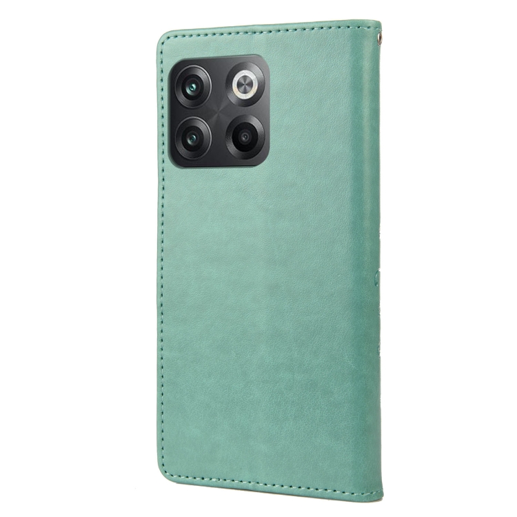 Funda de Cuero con Tapa para OnePlus 10T Patrón Flor de Mariposa (Verde)