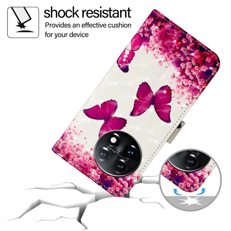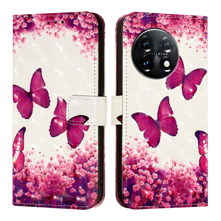 Funda de Cuero para OnePlus 11 con Tapa Horizontal y Pintura 3D (Mariposa Rosa)
