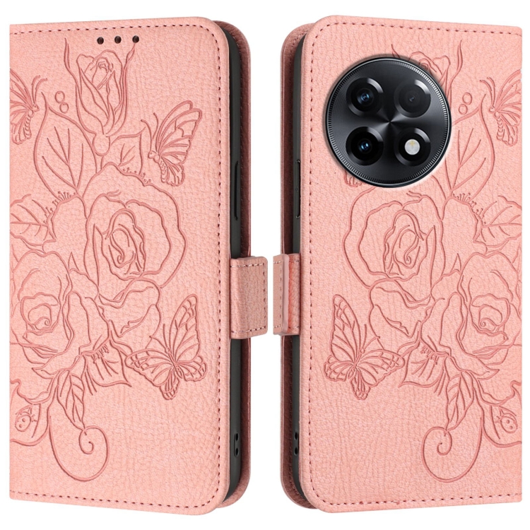 Funda de Cuero Antirrobo RFID para OnePlus 11R 5G con Relieve (Rosa)