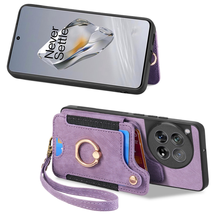 Funda para OnePlus 12 5G con Billetera RFID y Anillo con Sensación de Piel Retro (Púrpura)