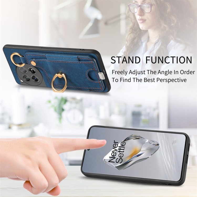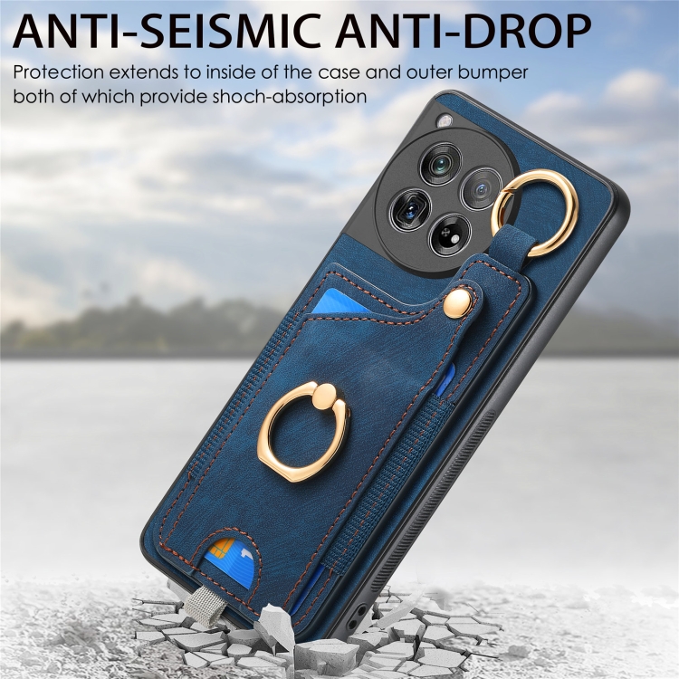 Funda para OnePlus 12 5G con Bolsa para Tarjeta, Anillo y Lazo para Colgar (Azul)