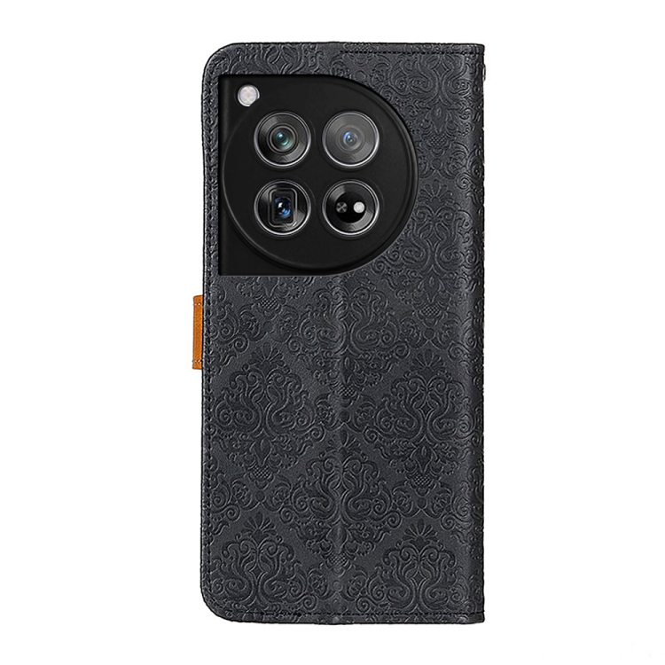 Funda para OnePlus 12 de Cuero con Tapa y Relieve Floral Europeo (Negro)