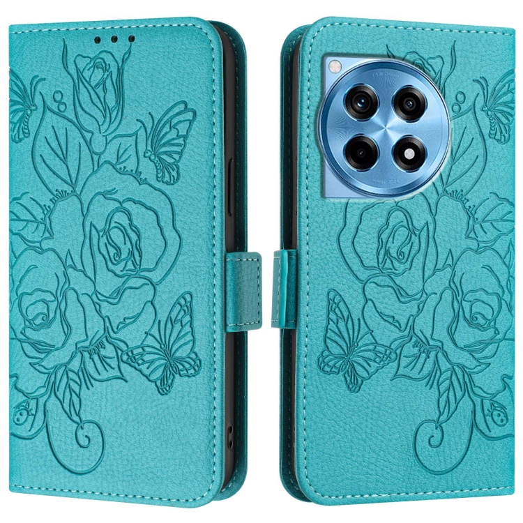 Funda para OnePlus 12R 5G de Cuero Antirrobo RFID con Relieve Rosa (Azul Claro)