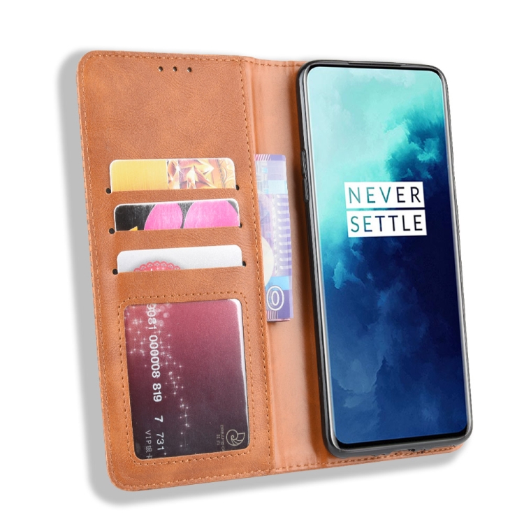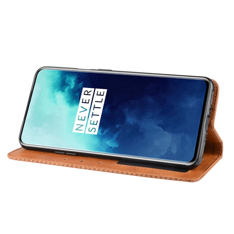 Funda de Cuero para OnePlus 7T Pro con Hebilla Magnética, Tapa Horizontal, Soporte y Ranuras para Tarjetas (Marrón)