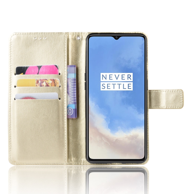 Funda de Cuero Retro Crazy Horse para OnePlus 7T con Tapa Horizontal, Soporte, Ranuras para Tarjetas y Marco de Fotos