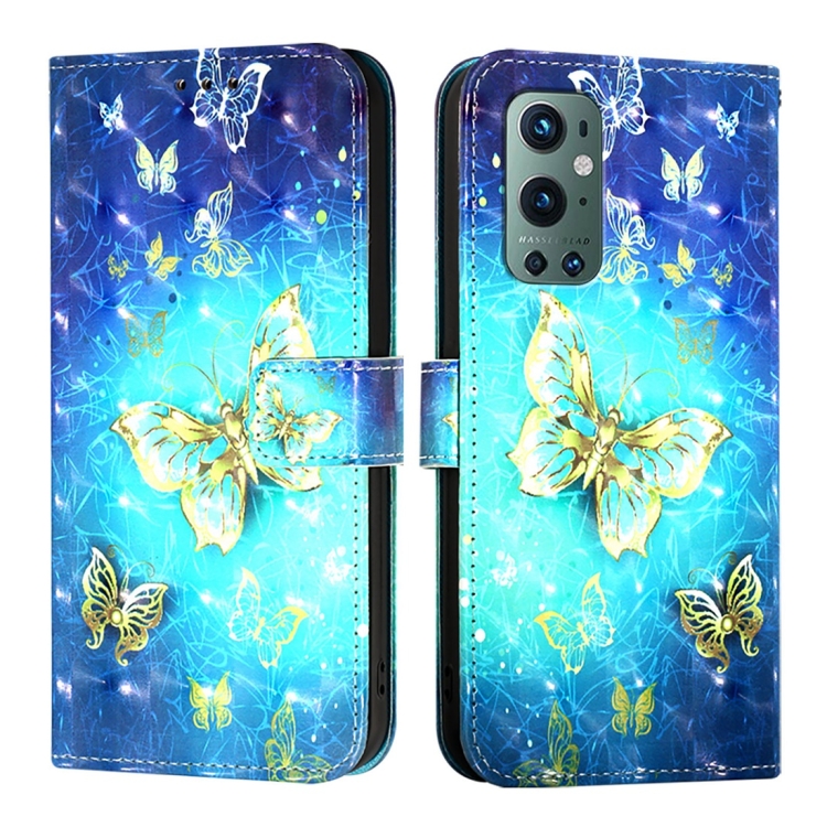 Funda de Cuero para OnePlus 9 Pro con Tapa Horizontal y Pintura 3D (Mariposa Dorada)