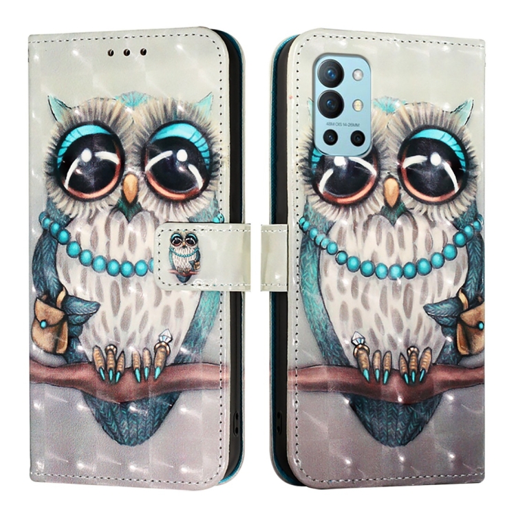 Funda para Teléfono OnePlus 9R y 8T Cuero con Tapa Horizontal y Pintura 3D (Búho Gris)