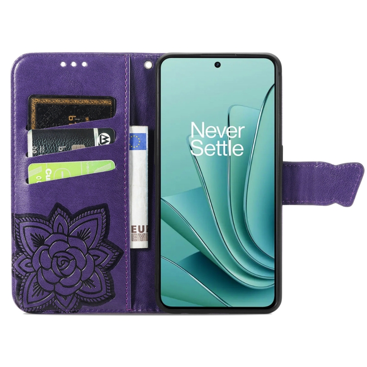 - 1x Estuche para Teléfono OnePlus Ace 2V Butterfly Love Flower Cuero En Relieve (Púrpura Oscuro)