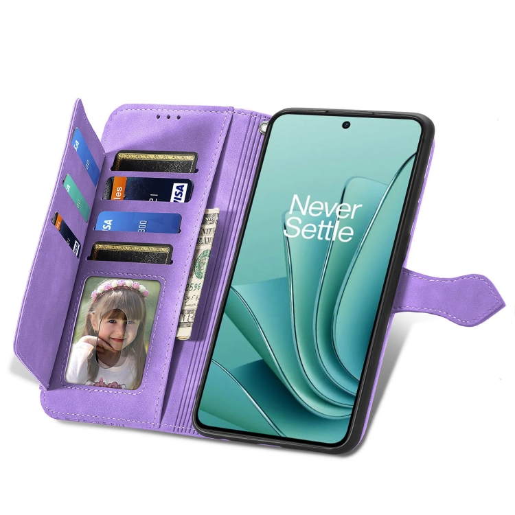 • 1x Estuche para OnePlus Ace 2V de Cuero con Cremallera y Flor en Relieve (Púrpura)