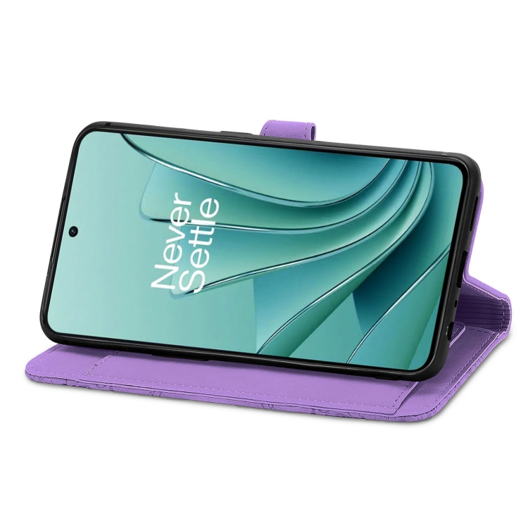 Estuche para OnePlus Ace 2V de Cuero con Cremallera y Flor en Relieve (Púrpura)