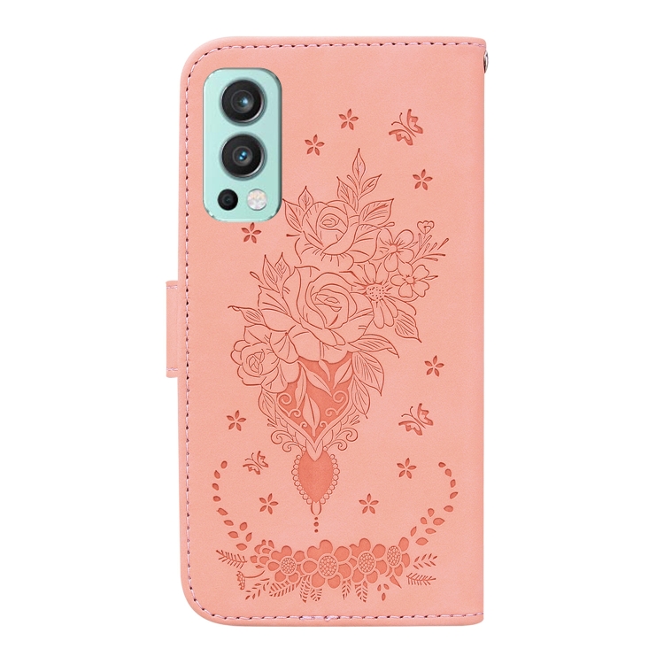 - 1x Funda para OnePlus Nord 2 5G Butterfly Rose en relieve de Cuero (Rosa)