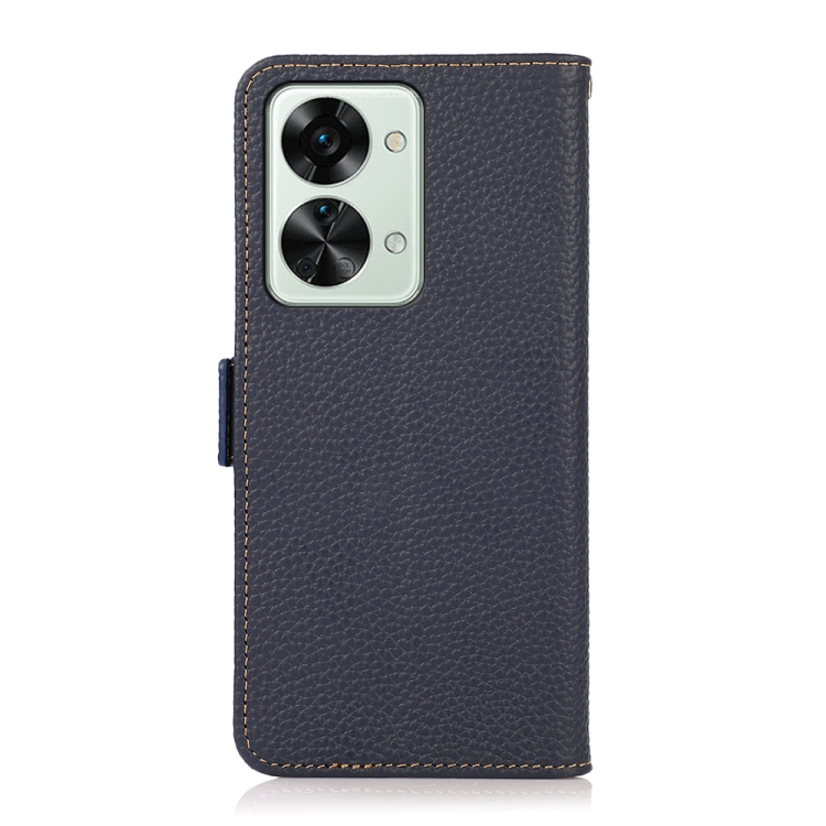 - 1x Funda para OnePlus Nord 2T 5G Khazneh Cuero Genuino con Textura Litchi y RFID (Azul)