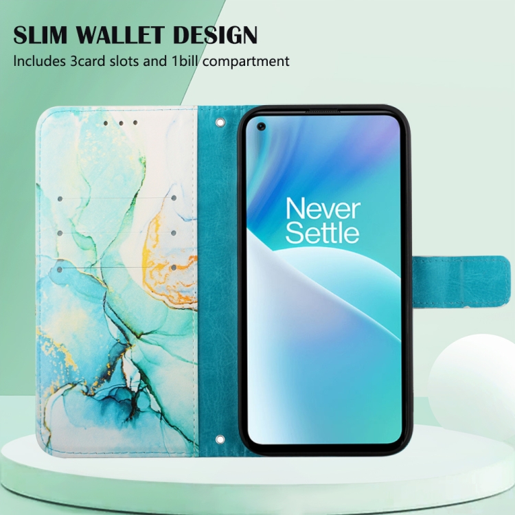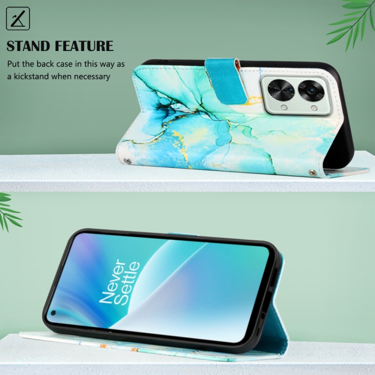 - 1x Funda Flip para OnePlus Nord 2T 5G con patrón Mármol (Verde Ls003)