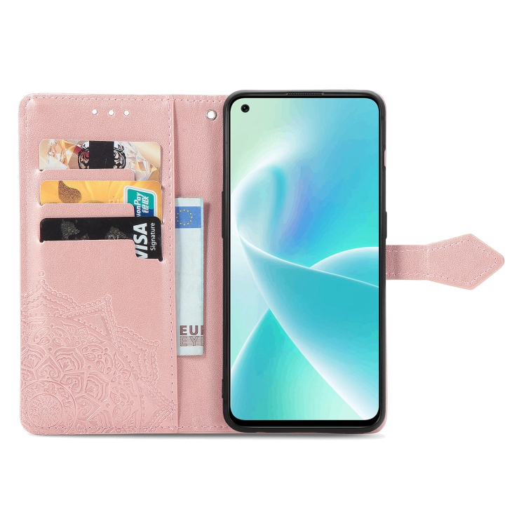 - 1x Funda Horizontal Flip de Cuero para OnePlus Nord 2T Mandala Flower Flowed (Oro Rosa)