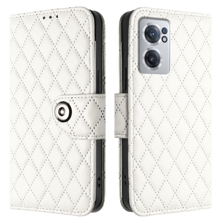 Funda para OnePlus Nord Ce 2 5G de Cuero con Tapa, Textura Romboidal y Cordón (Blanco)