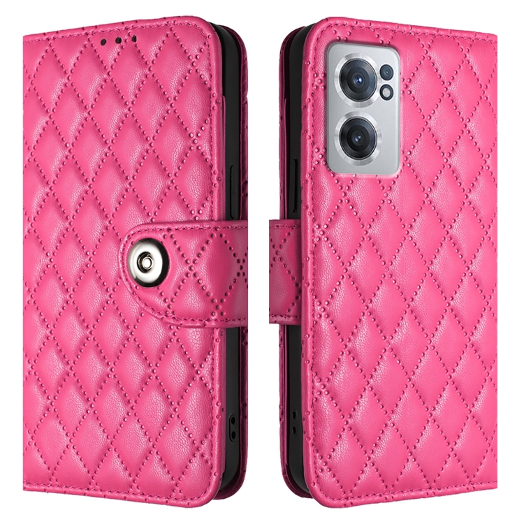 Funda para OnePlus Nord Ce 2 5G de Cuero con Tapa, Textura Romboidal y Cordón (Rojo Rosa)