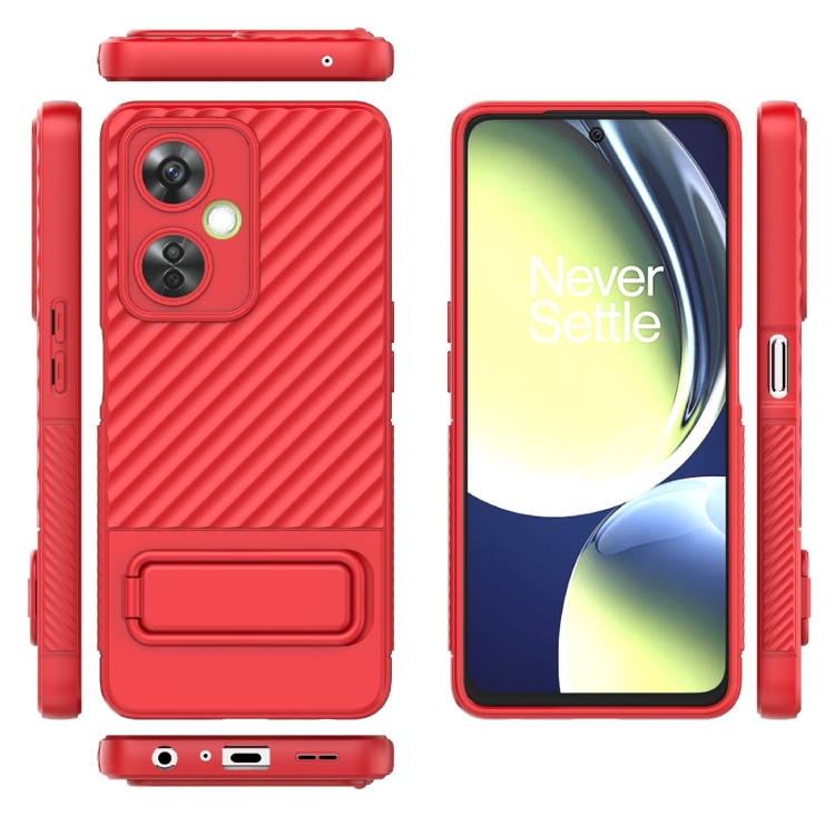 - 1x Funda de TPU para OnePlus Nord Ce 3 con Textura Ondulada y Película de Lente (Rojo)