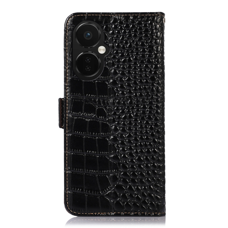 - 1x Funda para OnePlus Nord Ce 3 Lite Cocodrilo Top Layer Cowhide Rfid Leather (Negro)