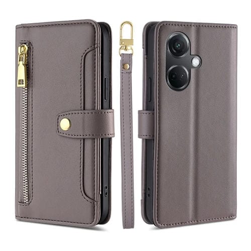 Funda de Cuero para OnePlus Nord Ce3 5G Lite con Textura de Oveja y Cremallera Cruzada (Gris)