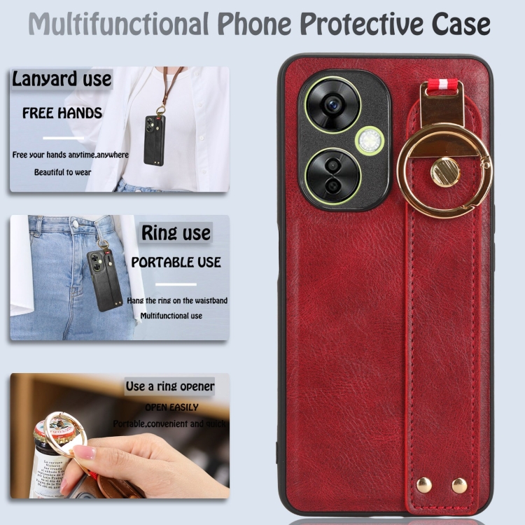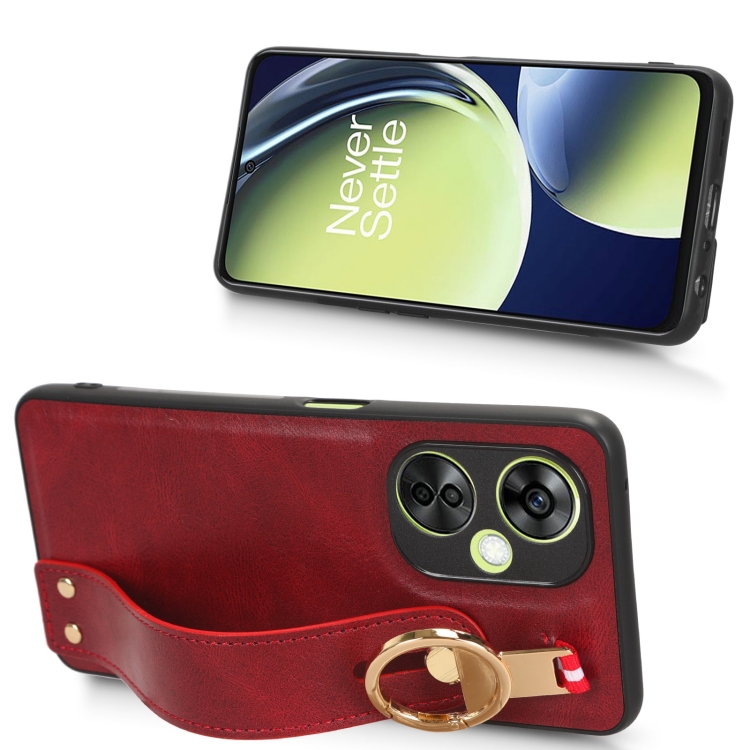 Funda Trasera de Cuero para OnePlus Nord Ce3 / Ce3 Lite / N30 con Pulsera (Rojo)