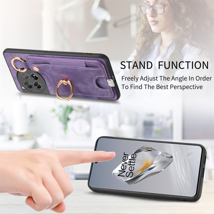Funda para OnePlus Nord Ce3 con Bolsa para Tarjeta, Anillo y Lazo para Colgar (Púrpura)