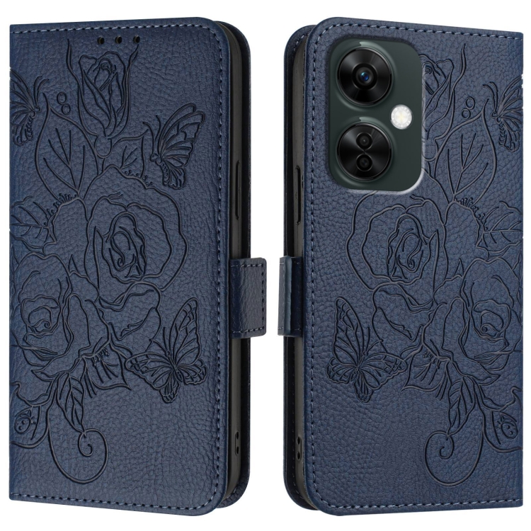 Funda de Cuero Antirrobo RFID para OnePlus Nord Ce3 Lite 5G / Nord N30 con Relieve Rosa (Azul Oscuro)