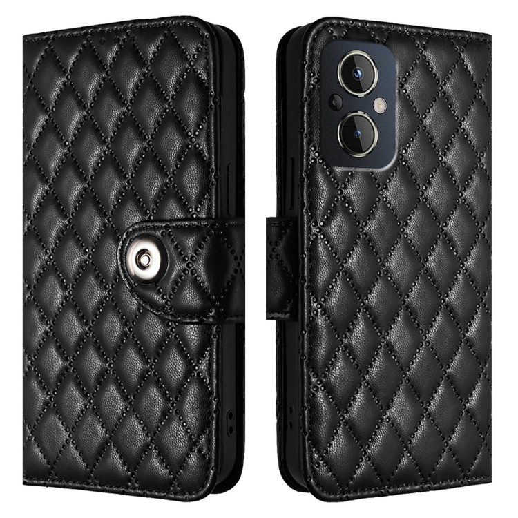 Funda para OnePlus Nord N20 5G de Cuero con Tapa, Textura Romboidal y Cordón (Negro)