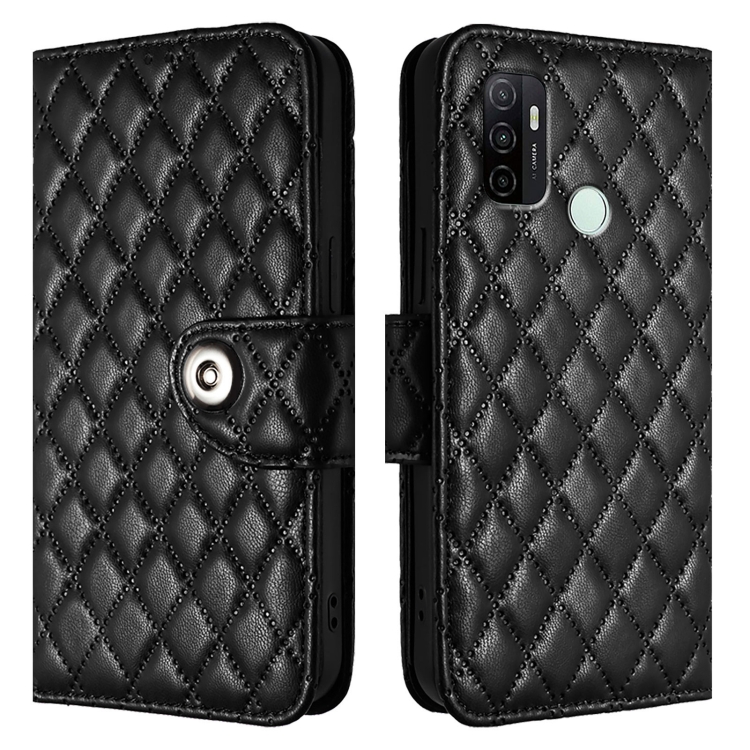 Para Oppo A11S 4G Funda de Cuero con Tapa con Textura Romboidal y Cordón (Negro)