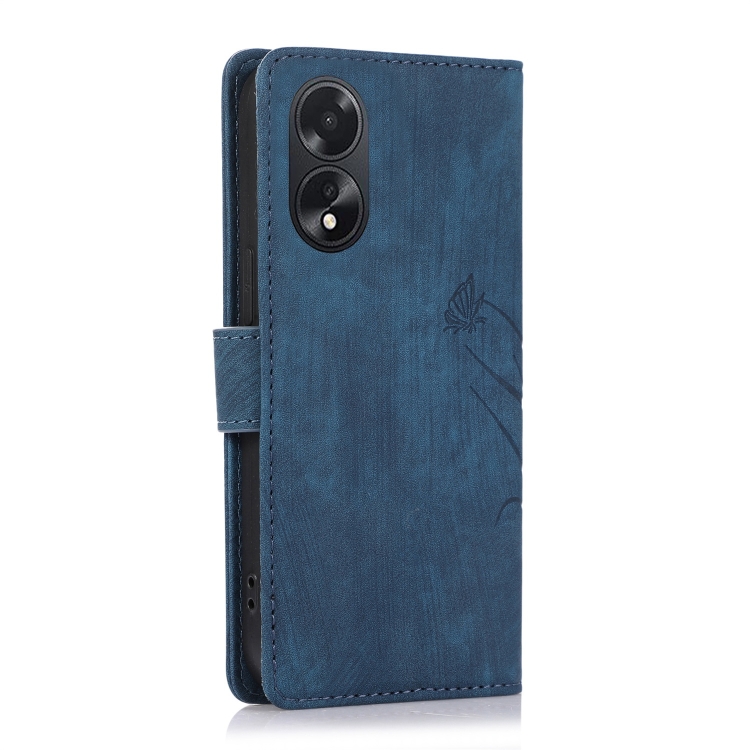 Para Oppo A18 / A38 Funda para Teléfono de Cuero con Relieve de Mariposa Orquídea (Azul)