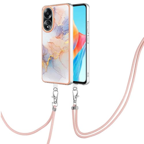 Para Oppo A58 4G Caja de Teléfono Imd TPU con Galvanoplastia con Cordón (Mármol Blanco)