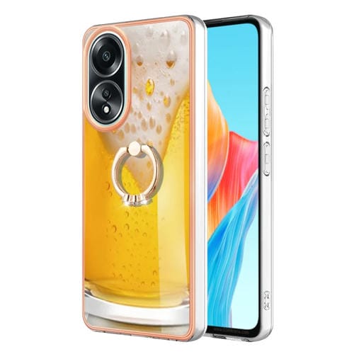Para Oppo A58 4G Estuche para Teléfono Imd de Doble Cara con Galvanoplastia y Soporte para Anillo (Cerveza de Barril)