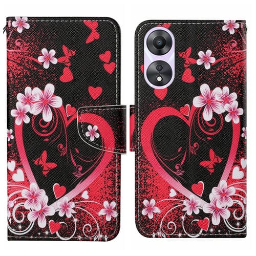 Para Oppo A58 4G Funda de Cuero para Teléfono con Patrón de Dibujo Coloreado (Corazón Rojo)