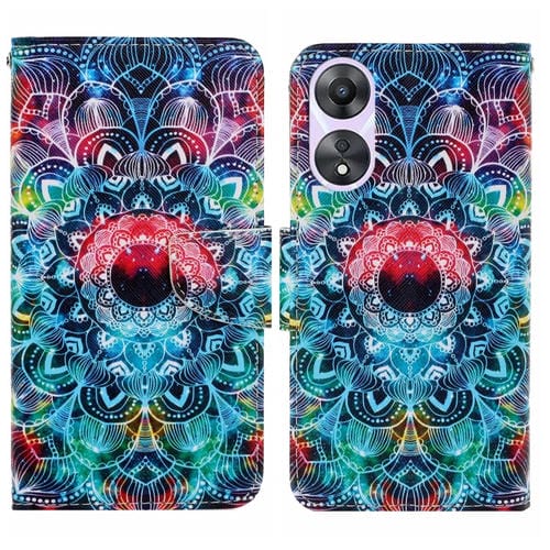 Para Oppo A58 4G Funda de Cuero para Teléfono con Patrón de Dibujo Coloreado (Mandala)