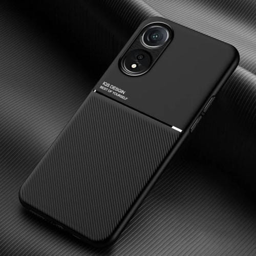 Para Oppo A58 5G Classic Tilt Strip Grain Funda para Teléfono PC + TPU Magnética a Prueba de Golpes (Negro)