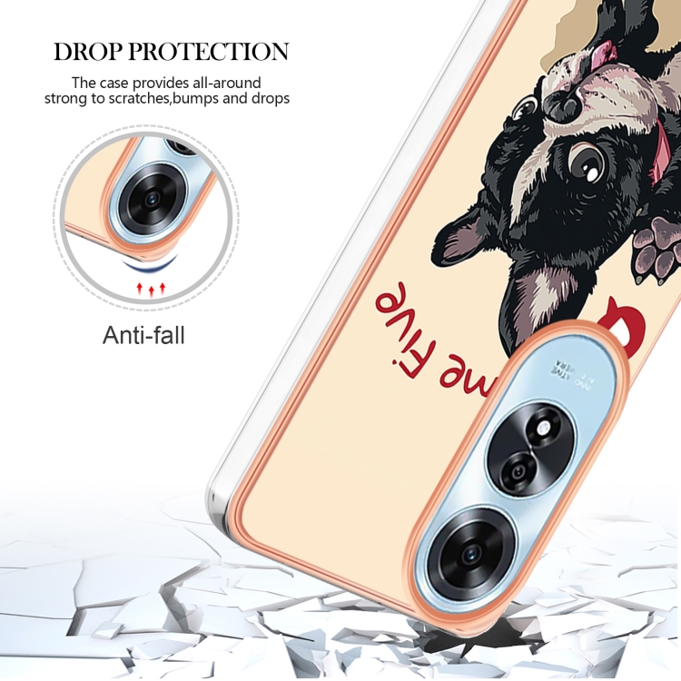 Para Oppo A60 4G Caja de Teléfono Imd de Doble Cara de Mármol Galvanizado (Perro Afortunado)