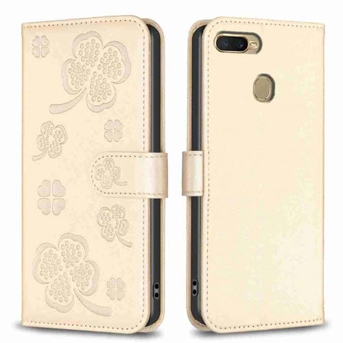 Para Oppo A7 Funda de Teléfono de Cuero En Relieve de Cuatro Hojas (Dorado)