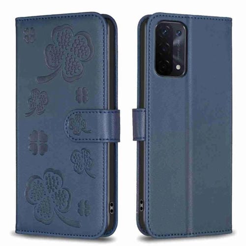 Para Oppo A74 5G / A93 5G / A54 5G Funda para Teléfono de Cuero En Relieve de Cuatro Hojas (Azul)