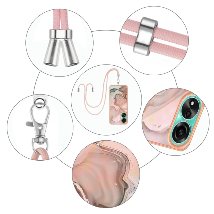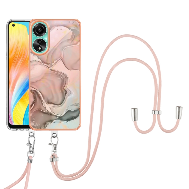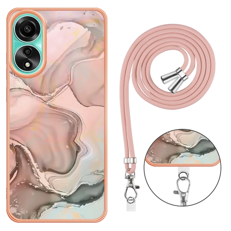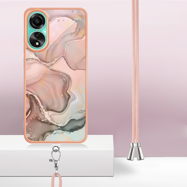 Para Oppo A78 4G Caja de Teléfono Imd de Doble Cara de Mármol Galvanizado con Cordón (Oro Rosa 015)