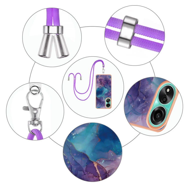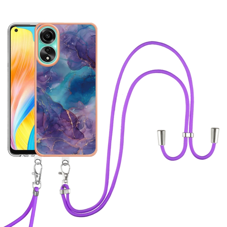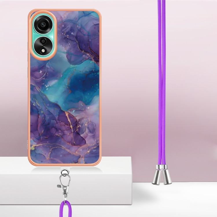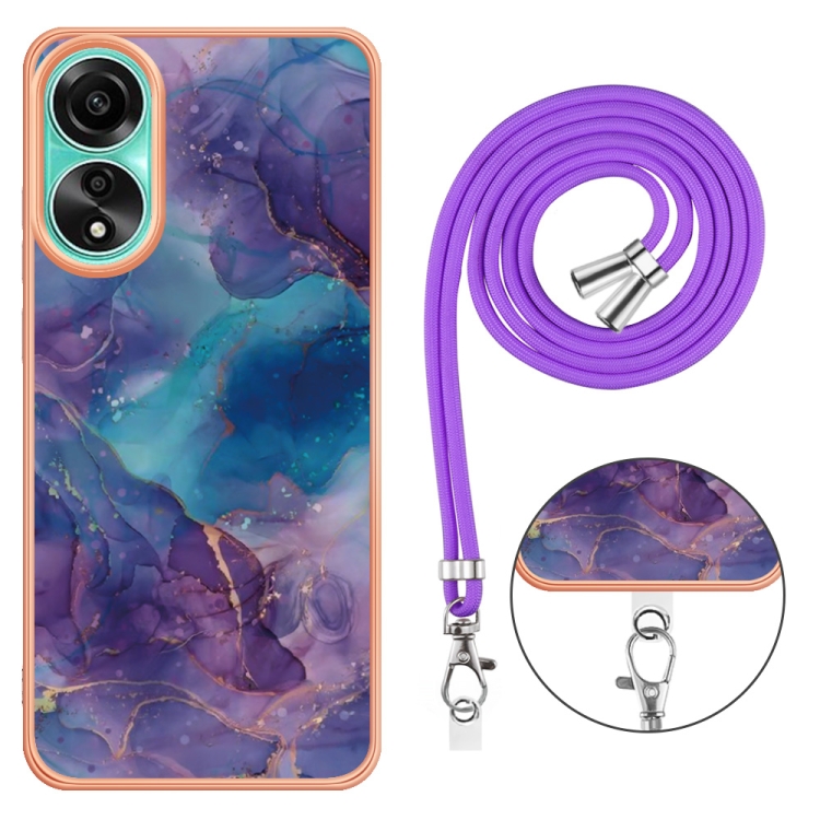 Para Oppo A78 4G Caja de Teléfono Imd de Doble Cara de Mármol Galvanizado con Cordón (Púrpura 016)