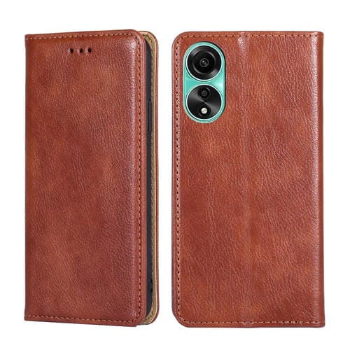 Para Oppo A78 4G Estuche de Teléfono de Cuero Magnético de Color Sólido con Aceite Brillante (Marrón)