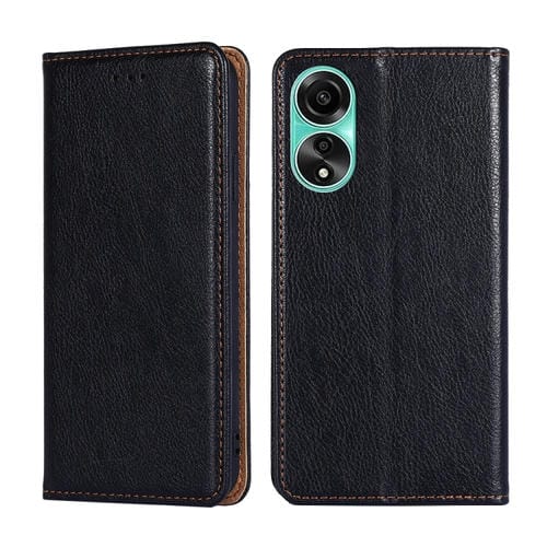 Para Oppo A78 4G Estuche de Teléfono de Cuero Magnético de Color Sólido con Aceite Brillante (Negro)