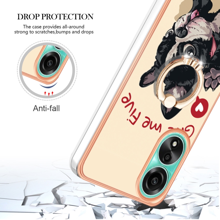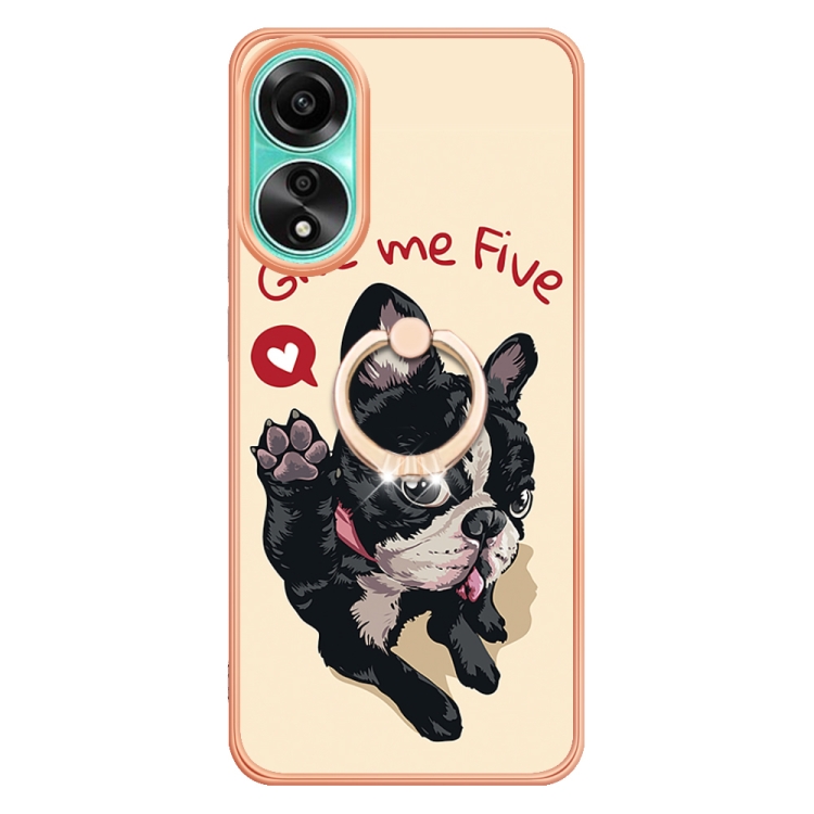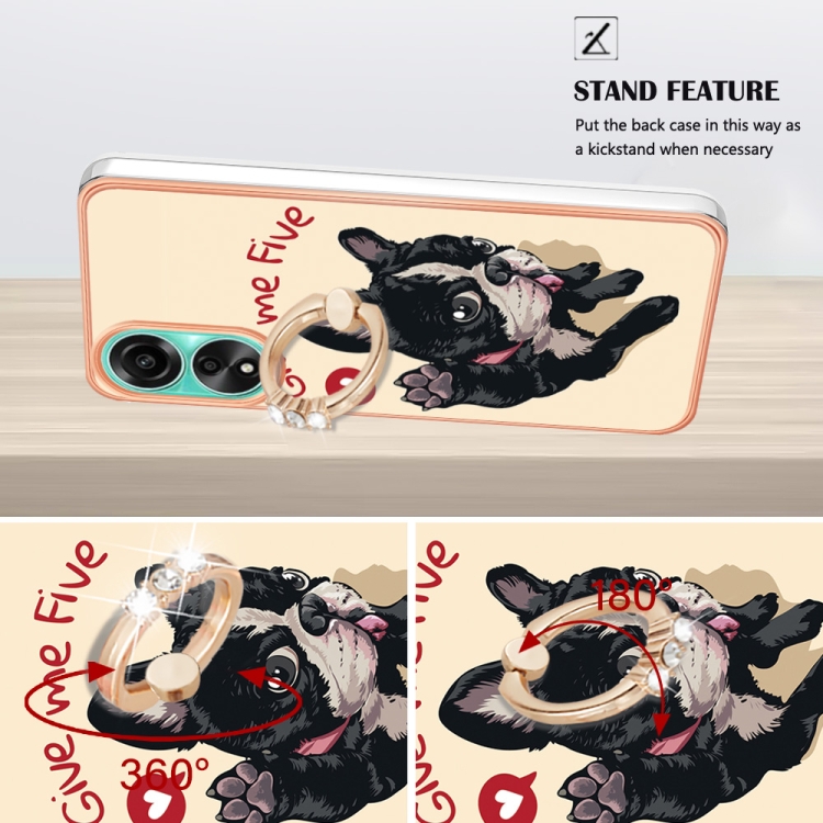 Para Oppo A78 4G Estuche para Teléfono Imd de Doble Cara con Galvanoplastia y Soporte para Anillo (Lucky Dog)