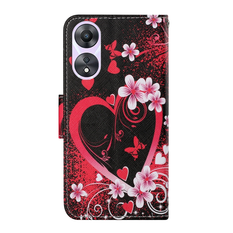 Para Oppo A78 4G Funda de Cuero para Teléfono con Patrón de Dibujo Coloreado (Corazón Rojo)
