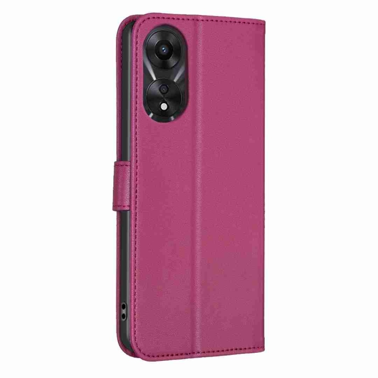 Para Oppo A78 5G Funda para Teléfono de Cuero con Relieve de Cuatro Hojas (Rojo Rosa)